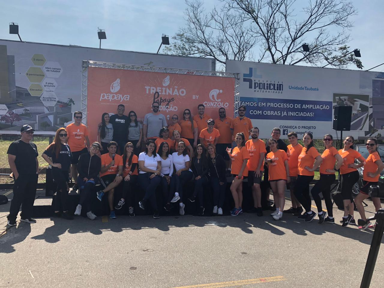 O 2º Treinão Funcional da Agência Papaya Comunicação, realizado em Taubaté, em parceria com o Taubaté Shopping Center e a Academia Cunzolo, responsável por sacudir os mais de 120 participantes. As atividades começaram às 8 horas com um leve aquecimento e o treinão foi conduzido com base no método “Tabata”, que é um treino intervalado de alta intensidade com foco em movimentar o corpo todo – membros superiores, inferiores e “core” – e, para encerrar as atividades, a equipe da Cunzolo aplicou o “five”, um método inovador de treinamento que trata a lógica da dor, instruídos por uma fisioterapeuta.