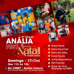 Segundo Rejanne Silveira, sócia da Rede Bons Negócios (empresa responsável pelo evento), o Anália Fest já se tornou um dia aguardado não só pelos moradores do bairro, mas por turistas e pessoas de outras regiões. “Venha vivenciar um dia de celebração, arte, comidinhas deliciosas, compras especiais e uma atmosfera natalina que vai aquecer seu coração. Não perca essa oportunidade de criar memórias mágicas com a família e amigos. Será um dia repleto de amor para todos, inclusive aos pets”, diz a empreendedora.