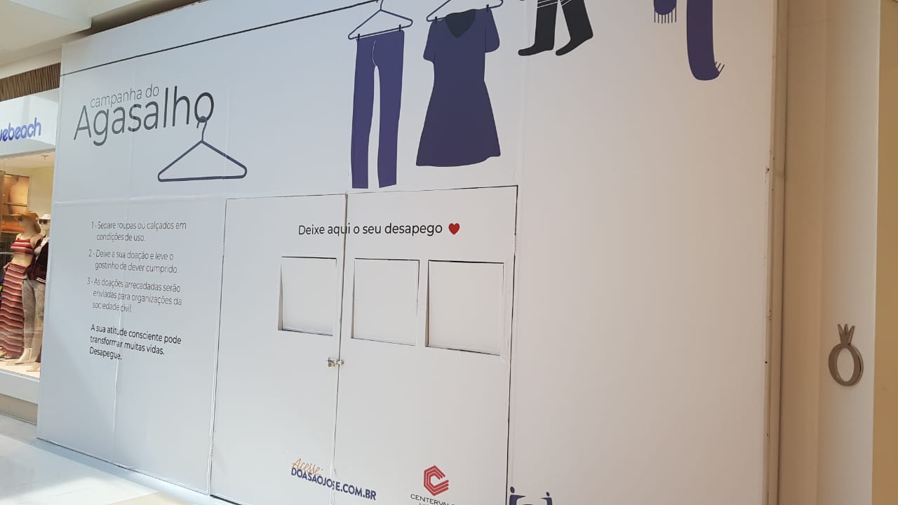São José dos Campos, 25 de julho de 2019 – O CenterVale Shopping, em parceria com o Fundo Social de São José dos Campos, inaugurou na última sexta-feira, dia 19 de julho, o Espaço Conceito da Campanha do Agasalho. Localizado no Piso Dutra, ao lado da Pandora, o espaço busca arrecadar cobertores, roupas novas e em bom estado para garantir, no inverno, a proteção de famílias em situação de vulnerabilidade social. As doações poderão ser feitas até o dia 31 de agosto.