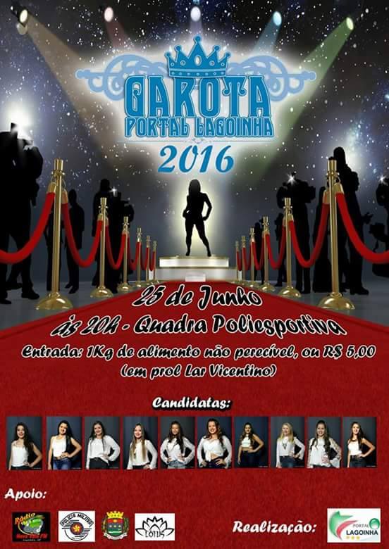 A sexta edição do já consagrado “Garota Portal Lagoinha” foi anunciada repleta de mudanças. Tudo começa com a realização do evento no Sábado, dia 25 de junho, às 20 horas. Outra novidade é o local, neste ano o concurso acontecerá na Quadra Poliesportiva Municipal, um espaço ainda mais amplo e adequado para receber o grande desfile da jovem beleza lagoinhense.
