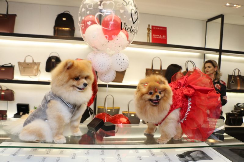As clientes das lojas Victor Hugo de São José dos Campos e seus animais de estimação se reuniram nesta quinta-feira, 16 de agosto, no Colinas Shopping, para mais uma edição do tradicional Dog Coquetel. Este ano, a grande atração foi o noivado dos Lulus da Pomerânia Victória e Sake, com direito a trajes de gala, pingentes de ouro, bolo com a foto dos pretendentes, decoração e até lembrancinhas para as convidadas. As crianças também marcaram presença na festa e ficaram encantadas com os dogs de diversas raças e tamanhos. Além de celebrar o amor das famílias pelos seus pets, o evento teve caráter solidário. Foram arrecadados 20 quilos de rações que serão doadas ao “Aumigo Ferreira”, que recolhe e trata com muito carinho os cães que são abandonados nas ruas. O evento foi promovido em parceria com Pet Vale.