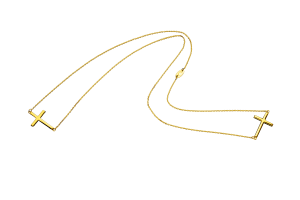 Coleção Cross – Anéis, pulseiras e escapulários em formato de cruz, sendo que algumas peças têm detalhes em pedras brancas ou pretas. Nos banhos Ouro 24k, Prata Italiana, banho Rosé 24k e Ródio Negro. Os valores variam de R$ 375,40 a R$ 907,20.