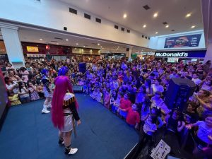 Inspirado no fenômeno da Netflix “Guerreiras do K-Pop”, o show trouxe ao palco as personagens Rumi, Zoey e Mira, que conquistaram o público com uma narrativa que destaca valores como amizade, união e confiança. A apresentação combinou músicas animadas, coreografia, figurinos e interação direta com a plateia, transformando a Praça de Alimentação em um verdadeiro palco da cultura K-Pop. Após o espetáculo, o público ainda participou de uma sessão de fotos com as personagens, garantindo registros especiais do encontro.
