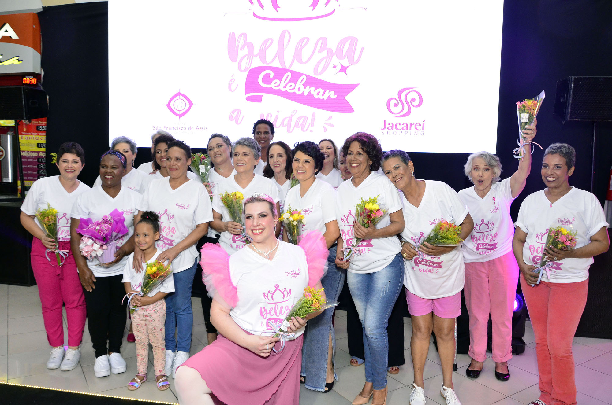 Mulheres em tratamento do câncer de mama e outras que já foram pacientes do Hospital São Francisco de Assis, participaram do evento ‘Beleza é celebrar a vida’, no Jacareí Shopping. A ação, que faz parte da campanha ‘Outubro Rosa’, foi realizada nesta quinta-feira (19), com um desfile de 20 mulheres, com objetivo é valorizar a luta feminina contra o câncer de mama.