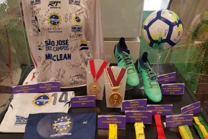 São José dos Campos, 11 de julho de 2019 – O CenterVale Shopping recebe de 10 a 21 de julho a exposição “Meninas da Águia: da Base à Seleção”, que apresenta a trajetória do time joseense, maior vencedor da Libertadores Feminina e o único do continente a ter conquistado o Mundial de Clubes. A mostra fica no Piso Dutra e retrata o trabalho do São José Futebol Feminino na formação de crianças e jovens até o alto rendimento, participando das principais competições nacionais.