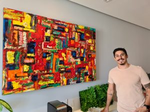 O arquiteto e design Murilo Sgorlon acaba de entrar para lista de clientes com obras Luiz Bhittencourt com uma pintura da série Janelas e Percepção para seu novo escritório de Arquitetura e Design no Jd. Aquarius em SJC.