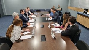 O secretário se reuniu com Anderson Farias, prefeito de São José dos Campos, Jeferson Cheriegate, diretor geral do Parque Tecnológico, Alberto Marques Filho, secretário de Inovação e Desenvolvimento Econômico, Marcelo Nunes, diretor de Negócios do Parque Tecnológico e Alexandra Gioso, diretora titular do Ciesp. No encontro foram apresentados o programa de internacionalização do Governo, assim como as ações voltadas para desburocratização, facilitação, promoção comercial e atração de investimentos para os projetos altamente inovadores produzidos na cidade. Além disso, a secretaria destacou a ação em parceria com a Secretaria de Fazenda para estudar agregar benefícios ao Programa OEA – Operador Econômico Autorizado, em nível estadual.
