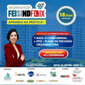 Um dos destaques da edição 2025 é a parceria com o Sindflix, maior portal de conteúdo para síndicos do Brasil. A programação inclui workshops gratuitos e com certificados, conduzidos pela Dra. Amanda Lobão, referência em gestão condominial. Os temas abordados serão: