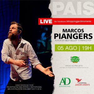 O Shopping Jardim Oriente e a sua administradora AD Shopping promovem, no dia 5 de agosto (quarta-feira), às 19h, uma live em comemoração ao Dia dos Pais com o escritor e palestrante Marcos Piangers. Em uma perfeita combinação com o bom humor e a diversão de suas histórias, o autor do livro “O Papai É Top”, que teve mais de 300 mil exemplares vendidos no Brasil, Espanha, Estados Unidos, Inglaterra e Portugal promete trazer um misto de emoções às famílias de todo o País.