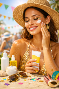 O protetor solar deve ser o maior aliado antes e durante o Carnaval. Use diariamente, mesmo em dias nublados, e reaplique a cada duas ou três horas, principalmente se estiver suando ou em ambientes externos. Protetores com toque seco e acabamento matte facilitam a aplicação antes da maquiagem.