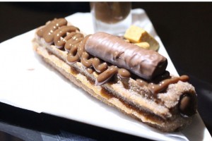 Hambúrguer de churros com recheio de doce de leite ou Nutella e Crepe com recheio de Churros.