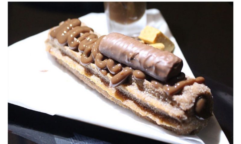 Churros com recheio de café e cobertura de chantilly ,