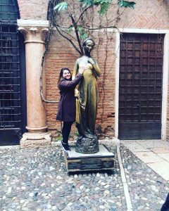 Em frente à Casa de Julieta se encontra a estátua da personagem onde os visitantes podem tocar em seu seio para ter sempre sorte no amor.