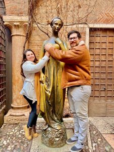 Em frente à Casa de Julieta se encontra a estátua da personagem onde os visitantes podem tocar em seu seio para ter sempre sorte no amor.